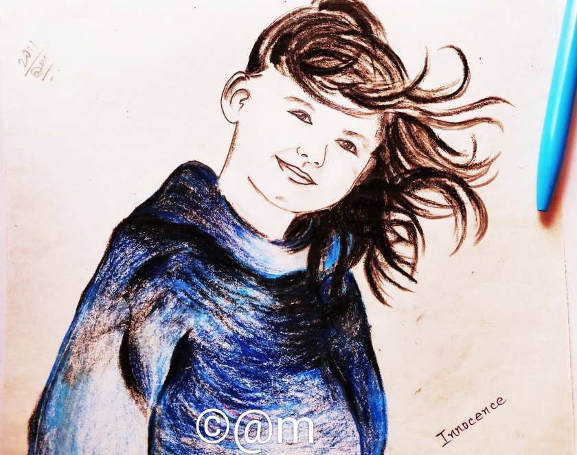 Strokes of a 16 years old teen!! Pencil Sketch with little touch of pastel colors..