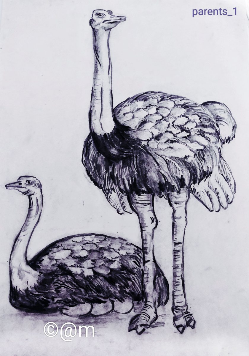 Portraying a pair of ostriches as overprotective parents.